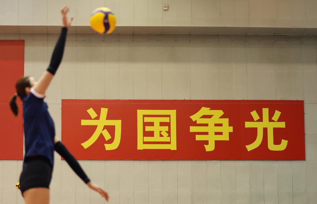 2月22日,中國女排球員在訓練中。新華社記者 賈浩成 攝