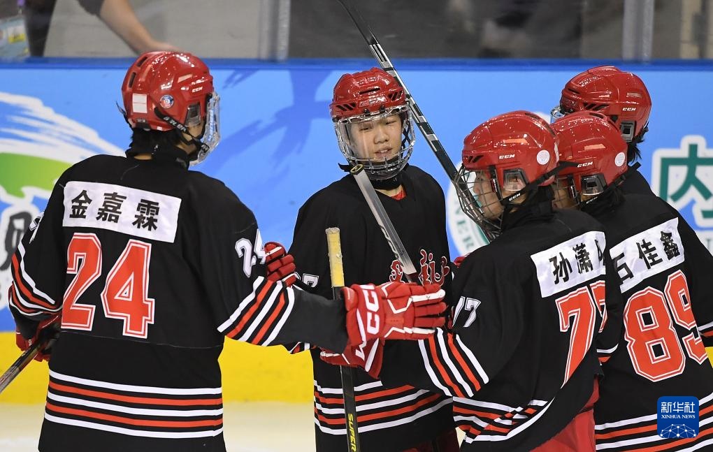 當(dāng)日,在內(nèi)蒙古冰上運(yùn)動訓(xùn)練中心冰球館舉行的第十四屆全國冬季運(yùn)動會冰球項(xiàng)目男子青年組小組循環(huán)賽A組比賽中,黑龍江隊(duì)7比2戰(zhàn)勝四川隊(duì)。