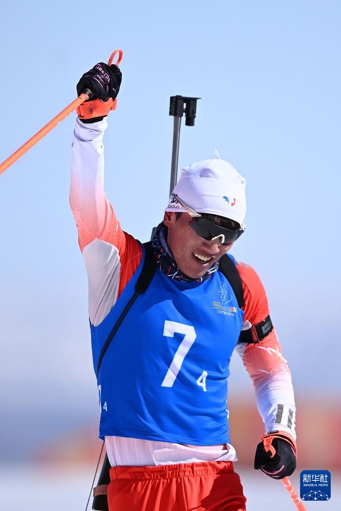 2月22日,內蒙古隊選手漸凱歌在比賽結束后慶祝。新華社記者 陳振海 攝