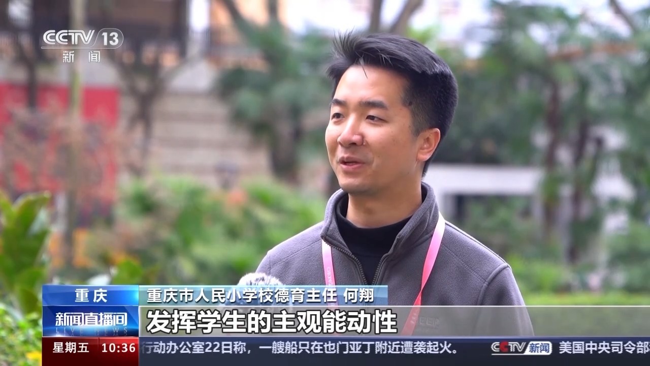 重慶市人民小學校德育主任 何翔:讓學生尋找渝中的人文之根,我們想通過這個活動發揮學生的主觀能動性,打開他們的眼界,讓他們通過這次活動自己去探尋,自己去探索,更綜合地讓自己的能力和眼界得到成長。