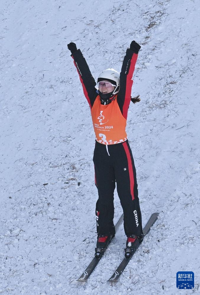 2月23日,內蒙古隊選手邵琪在比賽結束后慶祝。新華社記者 楊冠宇 攝