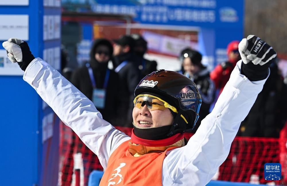 2月23日,內蒙古隊選手邵琪在結束比賽后慶祝。新華社記者 楊冠宇 攝
