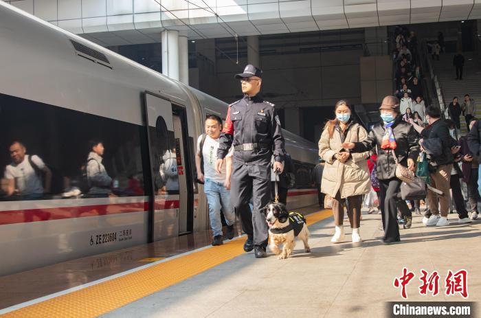 談話間,一輛列車??吭谡九_邊,“閃電”和“凱特”抓緊時間進行巡邏檢查,讓不少旅客投來好奇與興奮的目光。“媽媽,這里有狗狗!”“這是警犬,也是我們的英雄。”踏上列車前,一位母親向女兒如是解釋道。(完)