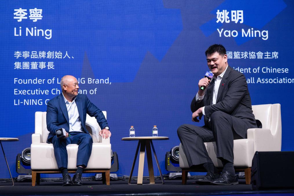 2月23日,姚明(右)與李寧在大灣區國際體育商業峰會上。新華社記者 張金加 攝