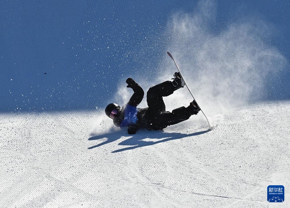 2月24日,河北隊選手梁城瑋在比賽中摔倒。他最終位列第12。新華社記者 劉坤 攝