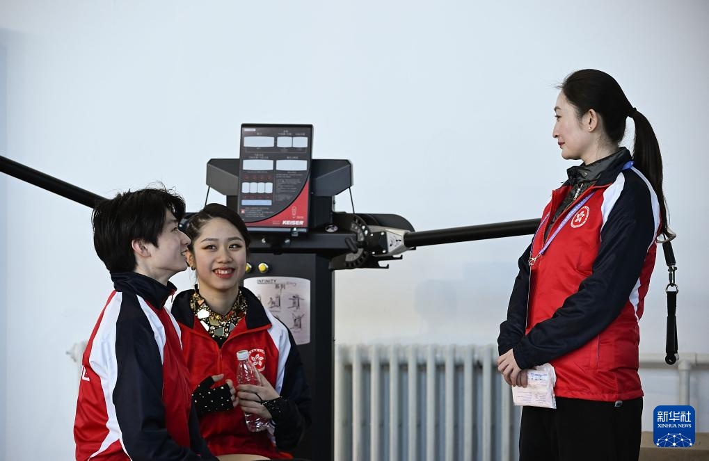 2月20日,香港花樣滑冰隊(duì)隊(duì)員趙向黎(左)在“十四冬”場館訓(xùn)練。