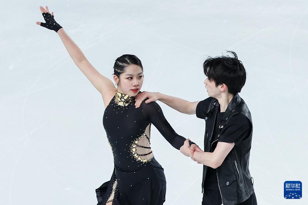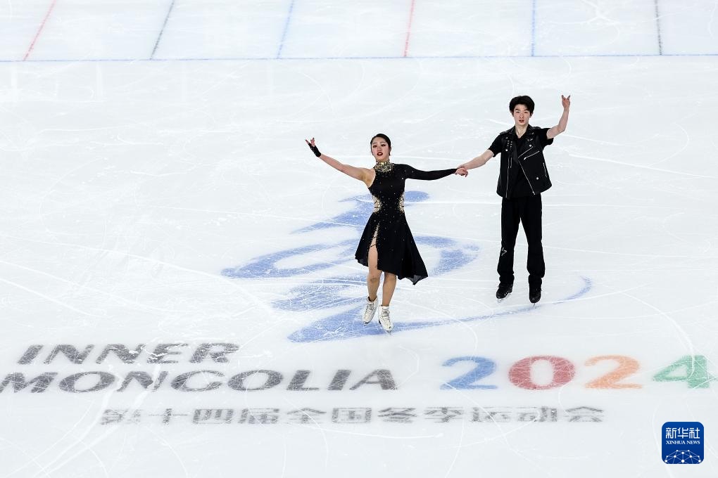 2月21日,香港隊(duì)組合康然(左)/鄒函運(yùn)在第十四屆全國冬季運(yùn)動(dòng)會(huì)花樣滑冰公開組團(tuán)體賽冰舞韻律舞比賽中。
