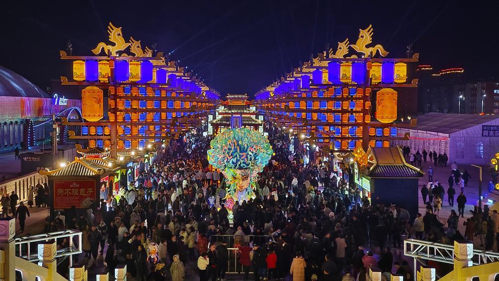 今年春節(jié)假期期間,大量游客到“烏蘭察布之夜”夜間游。新華社發(fā)
