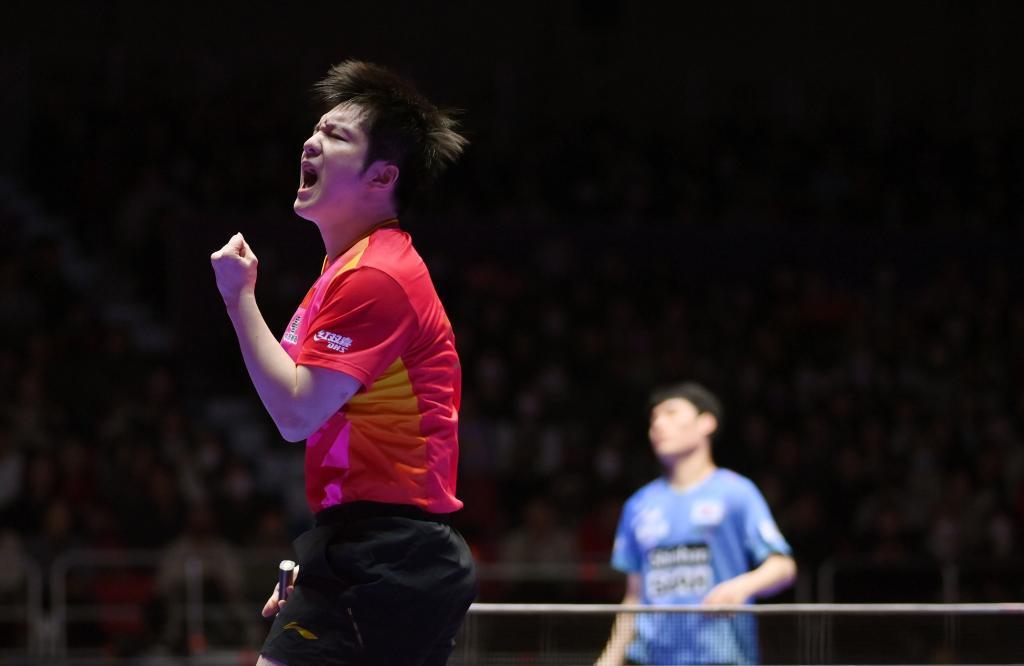 當天的半決賽,中國隊王楚欽、樊振東、馬龍先后登場。韓國隊張禹珍積極搶攻,帶亂了王楚欽的節奏,先贏一盤。樊振東以3:0戰勝林鐘勛,扳平比分。第三盤,李尚洙延續搶攻型打法,與馬龍苦戰5局,最終3:2勝出。此時中國隊盤分1:2落后,再不容有失。