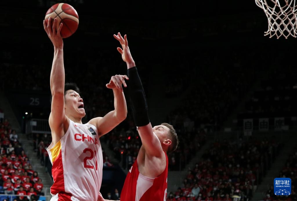 2月25日,中國隊球員胡明軒(左上)在比賽中投籃。