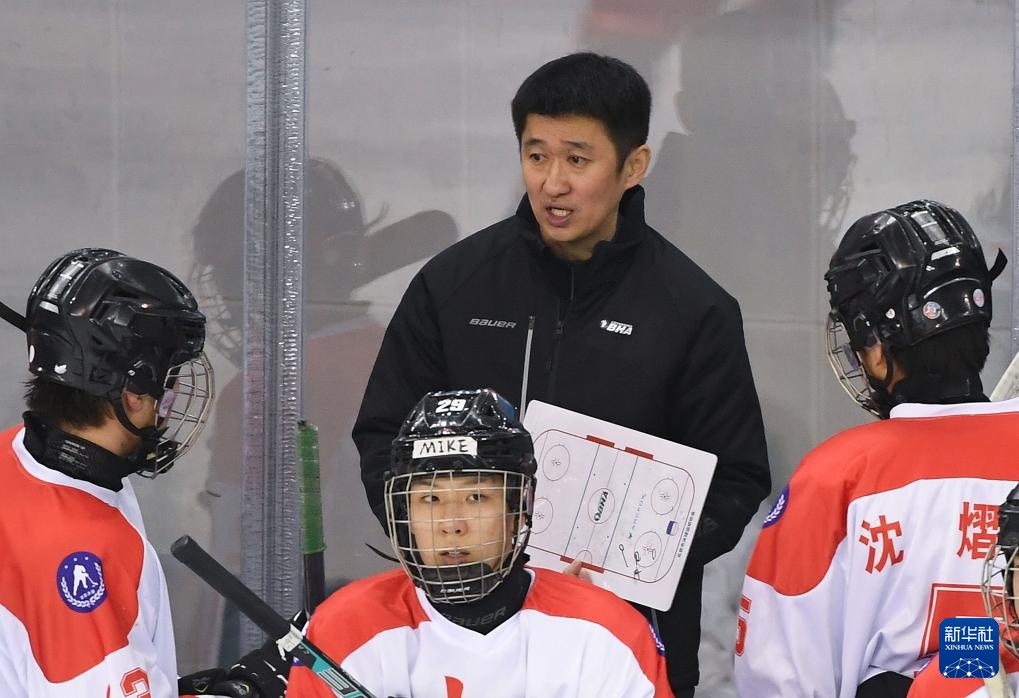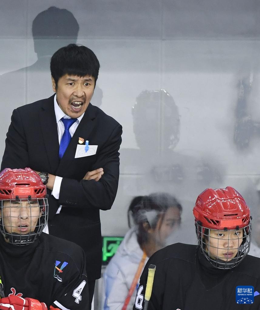 2月26日,黑龍江隊(duì)主教練張海泉(上)在比賽場(chǎng)邊指揮。新華社記者 鄧華 攝