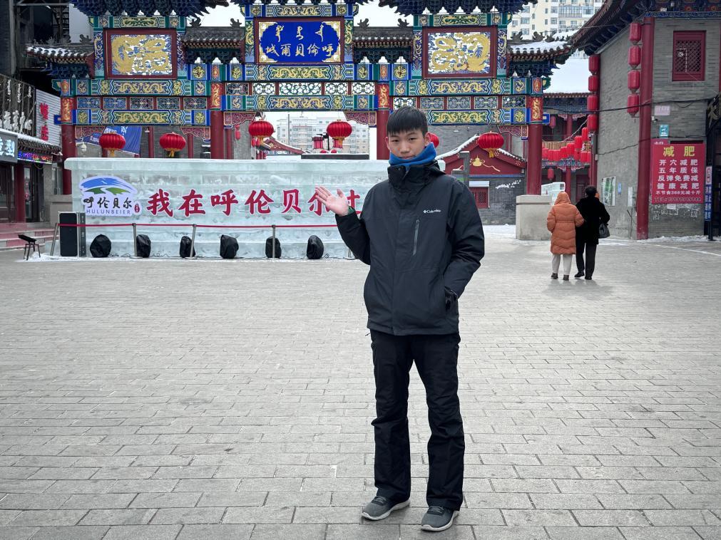 何智軒在“十四冬”期間于呼倫貝爾古城拍照留念。受訪(fǎng)者供圖