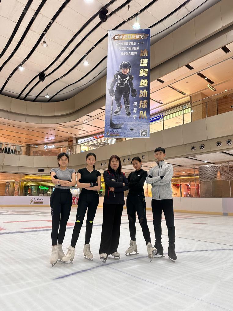 何智軒(右一)與伙伴們?cè)诒鶊?chǎng)上的合影。受訪(fǎng)者供圖