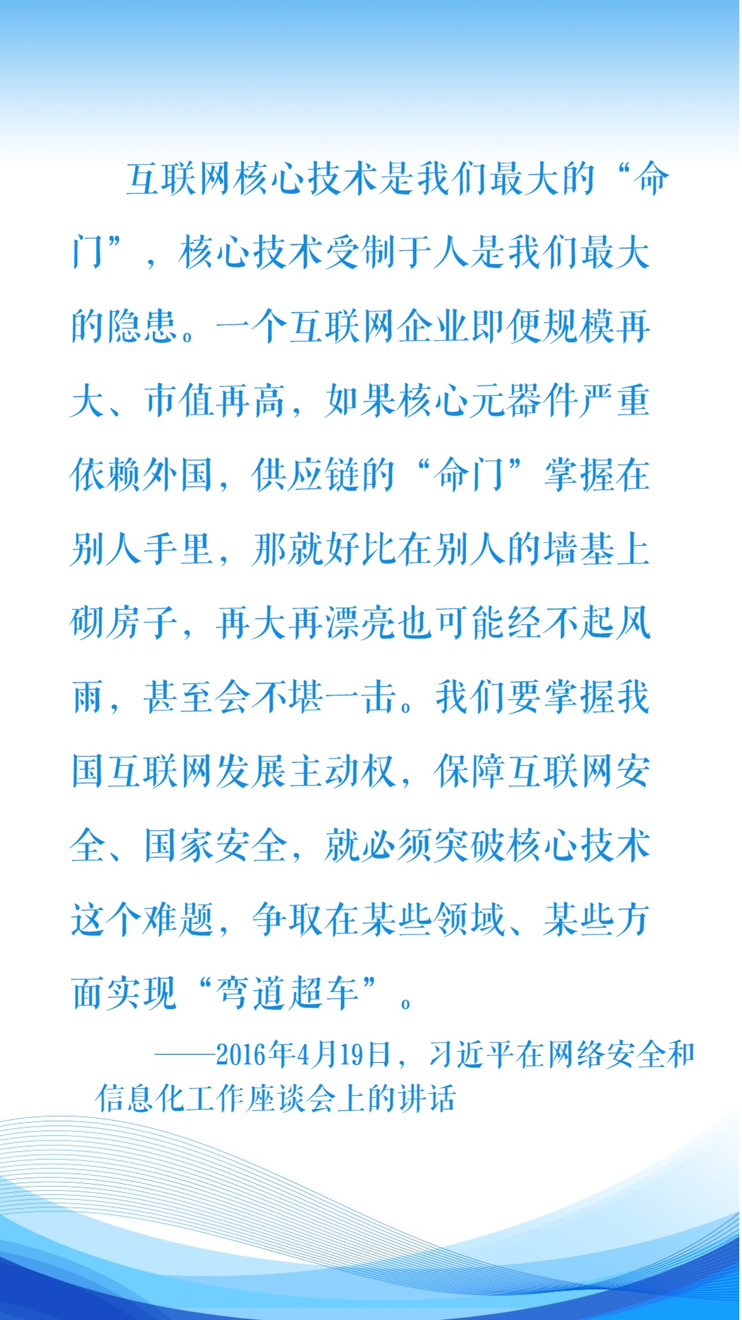 網信事業,代表著新的生產力和新的發展方向。網信領域的競爭,也是不同國家數字關鍵核心技術自主創新能力的競爭。要在網絡時代保障國家安全,要推進中國式現代化,就必須牽住數字關鍵核心技術自主創新這個“牛鼻子”,解決核心技術受制于人的隱患,提升自主創新能力,努力實現高水平科技自立自強。(肖聰聰)