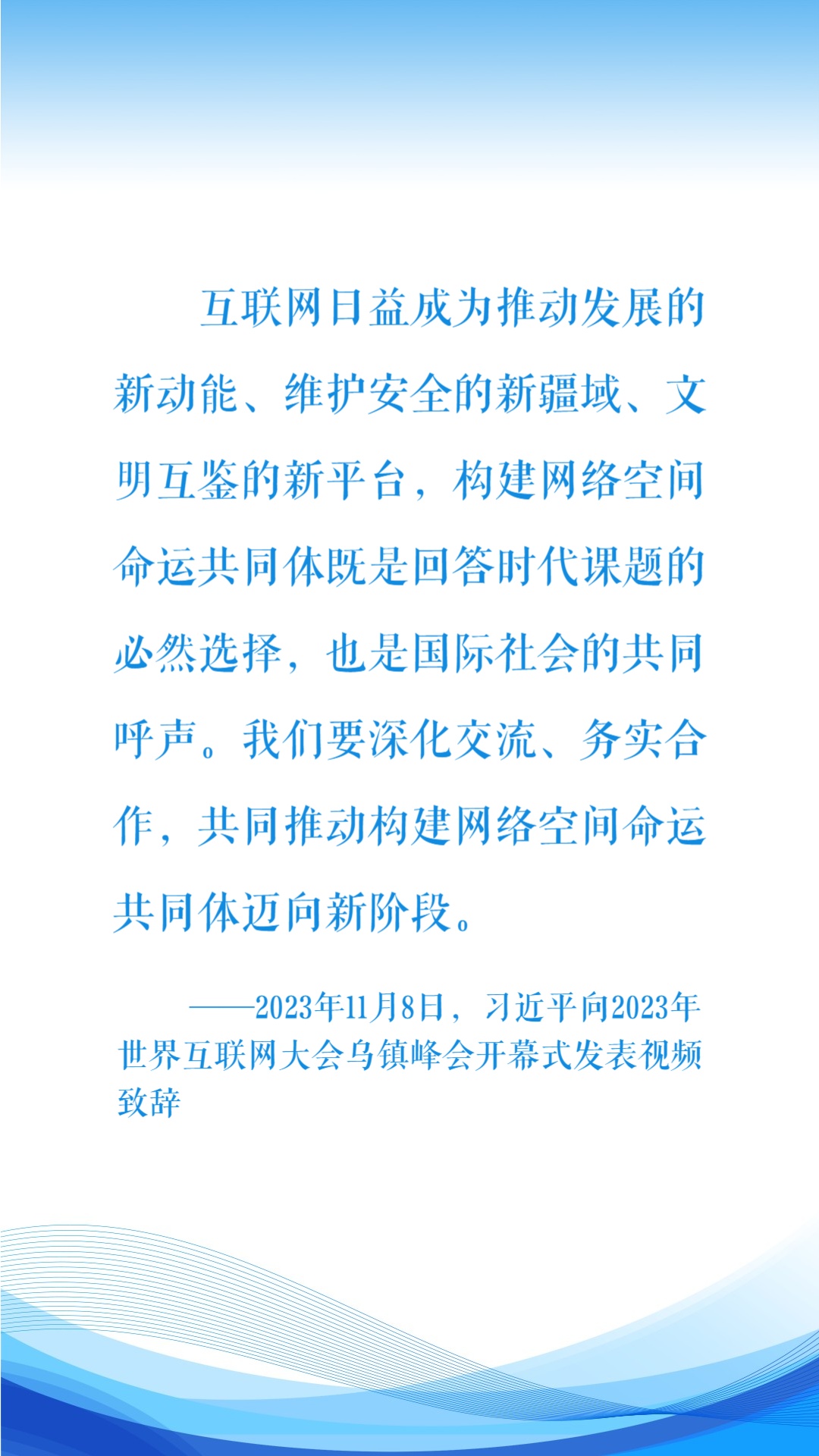 網絡空間命運共同體是人類命運共同體的重要組成部分。我們要深刻把握信息技術革命的深層規律,結合中國式現代化發展進程中的成就與經驗,基于“四項原則”和“五點主張”,推動構建網絡空間命運共同體,為全球網絡空間治理貢獻中國智慧與中國方案。(肖聰聰)