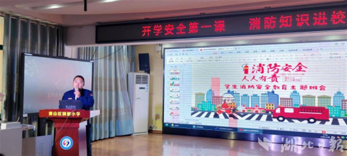 “小朋友們,假如遇到火災,我們首先應當怎么辦呢?”“打119”“趕緊逃跑”……2月26號上午,一場消防安全“開學第一課”正在武漢市青山區鋼都小學報告廳舉行,學校501班和502班100多位同學參加了學習。