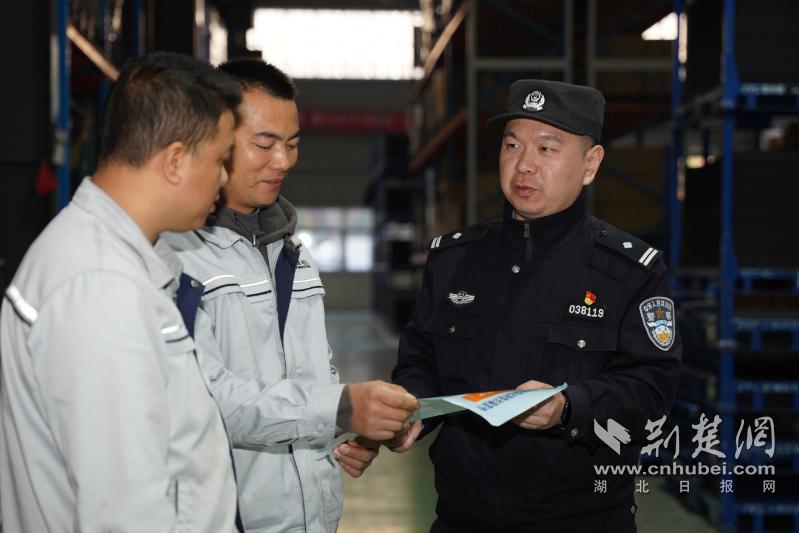 蔡甸分局奓山所社區民警何珺到企業走訪(高雷攝)