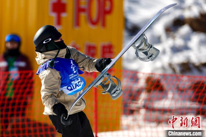 2月24日,第十四屆全國冬季運動會單板滑雪坡面障礙技巧公開組決賽在內蒙古呼倫貝爾市扎蘭屯金龍山滑雪場舉行。山西隊選手蘇翊鳴以96.60分奪冠。這是蘇翊鳴首次冬運之旅的第二金。 中新社記者 富田 攝