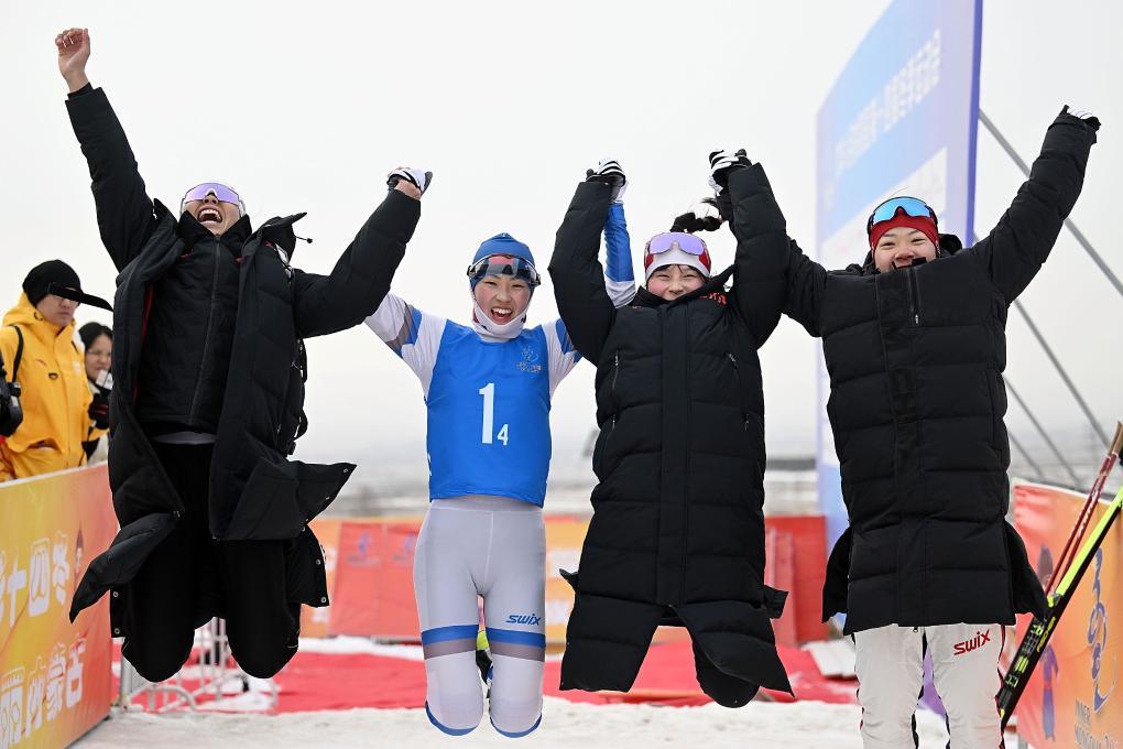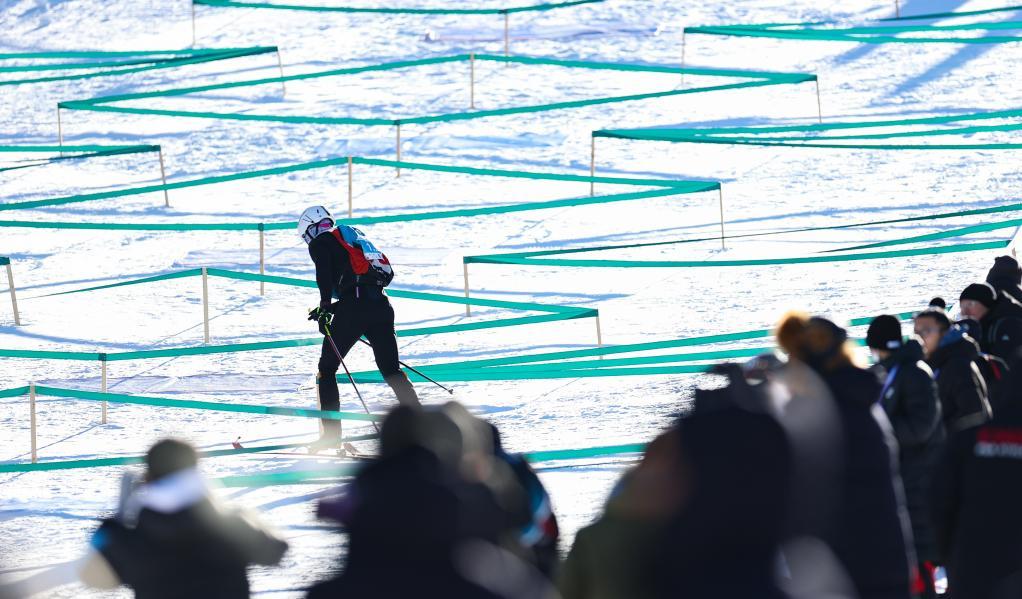 2月1日,第十四屆全國冬季運動會滑雪登山公開組混合接力比賽在內蒙古呼倫貝爾市扎蘭屯金龍山滑雪場舉行。新華社記者 王楷焱 攝