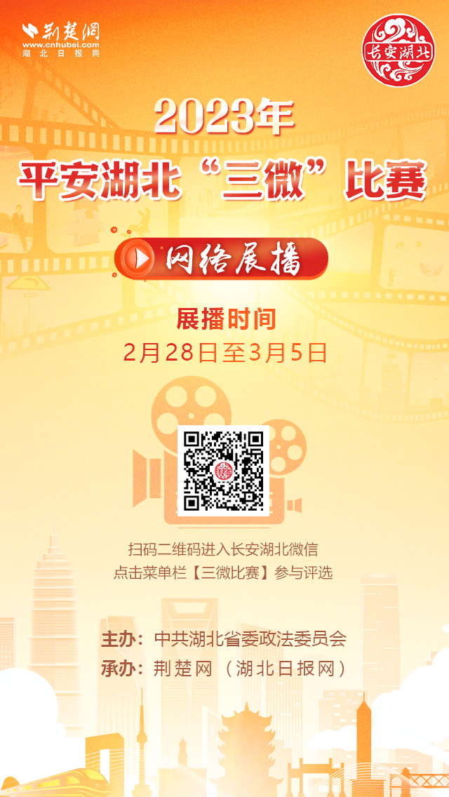 荊楚網(湖北日報網)訊(記者肖慧婷)2月28日,由中共湖北省委政法委員會主辦、荊楚網(湖北日報網)承辦的2023年平安湖北“三微”比賽網絡展播正式開啟。