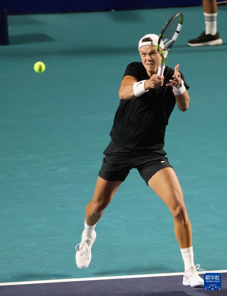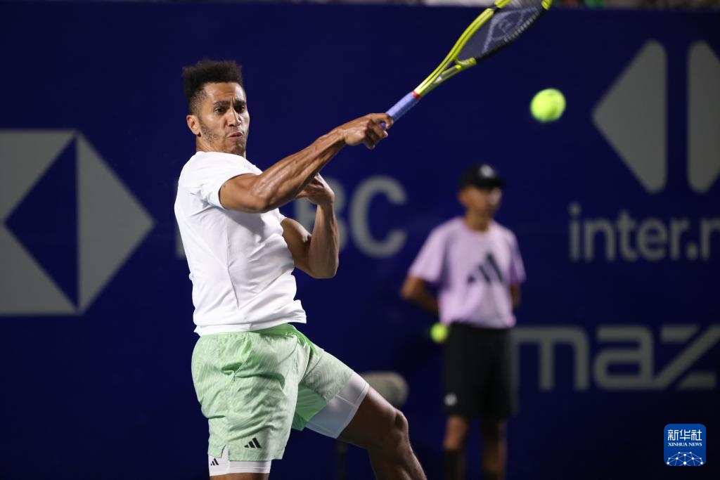 2月27日,美國選手邁克爾·莫在比賽中回球。新華社記者 李夢馨 攝
