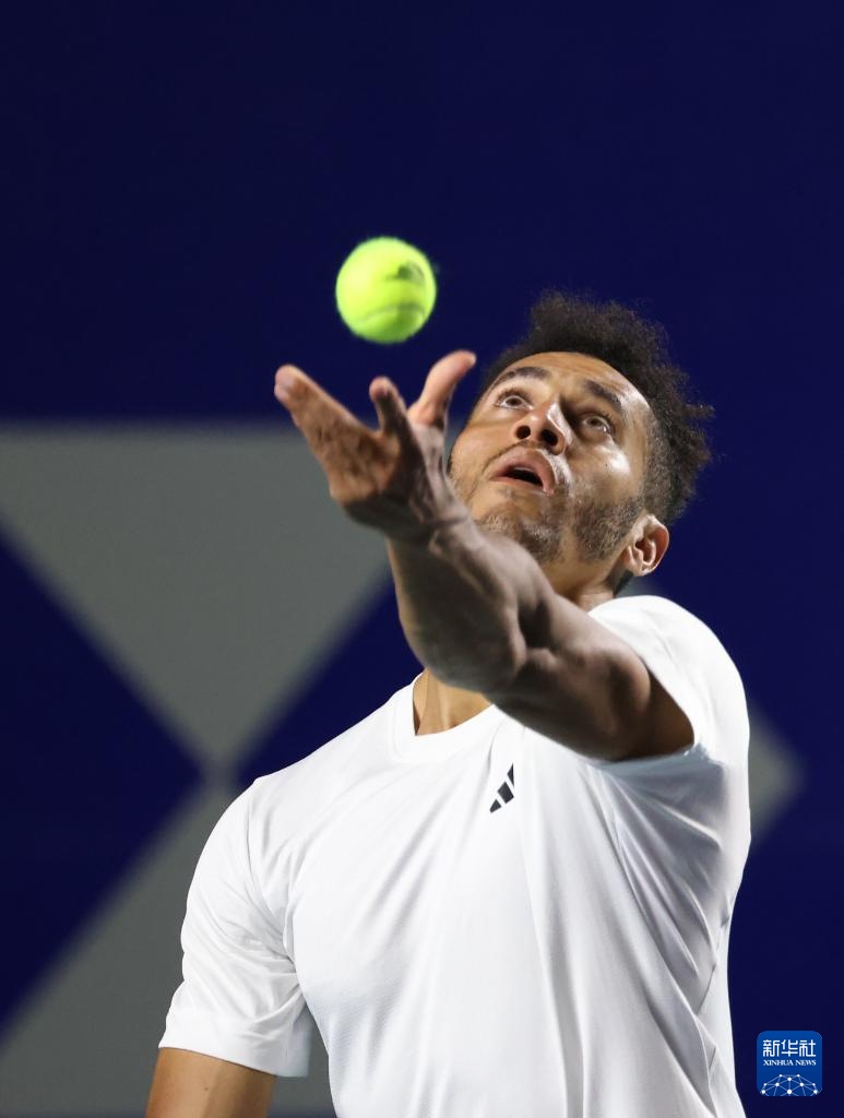 2月27日,美國選手邁克爾·莫在比賽中發球。新華社記者 李夢馨 攝