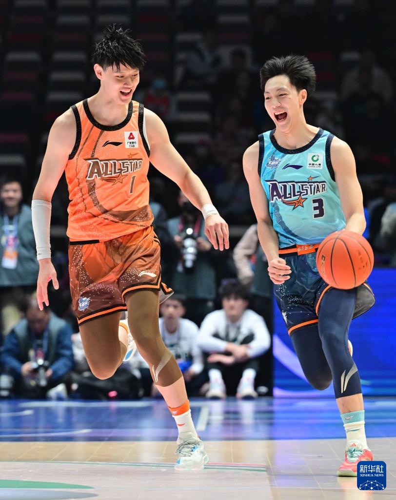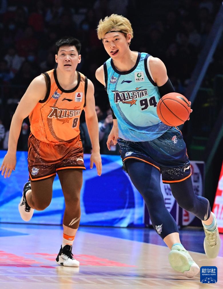 3月3日,南區明星隊球員胡明軒(右)帶球進攻。新華社記者 魏培全 攝