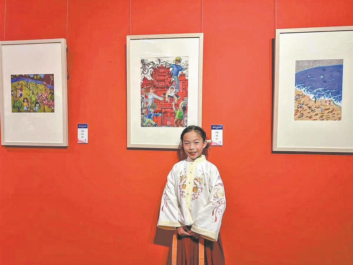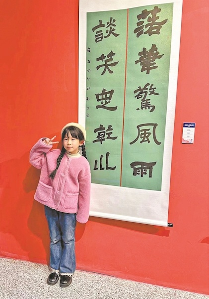 鄭亦柔和她的書法作品 攝影:楚天都市報極目新聞夏雨