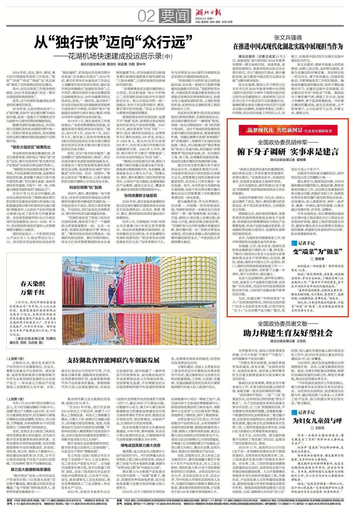 為把這件提案寫好、寫扎實,他深入走訪調研了武漢、鄂州、黃岡和黃石的多家企業、多個項目和多家單位,力求做到言之有據。