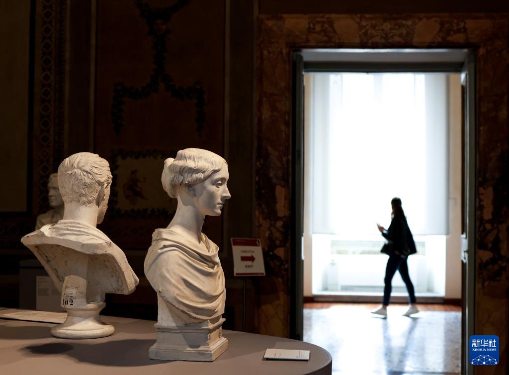 3月3日,參觀者在意大利羅馬的布拉斯基宮羅馬博物館常設(shè)展區(qū)參觀。