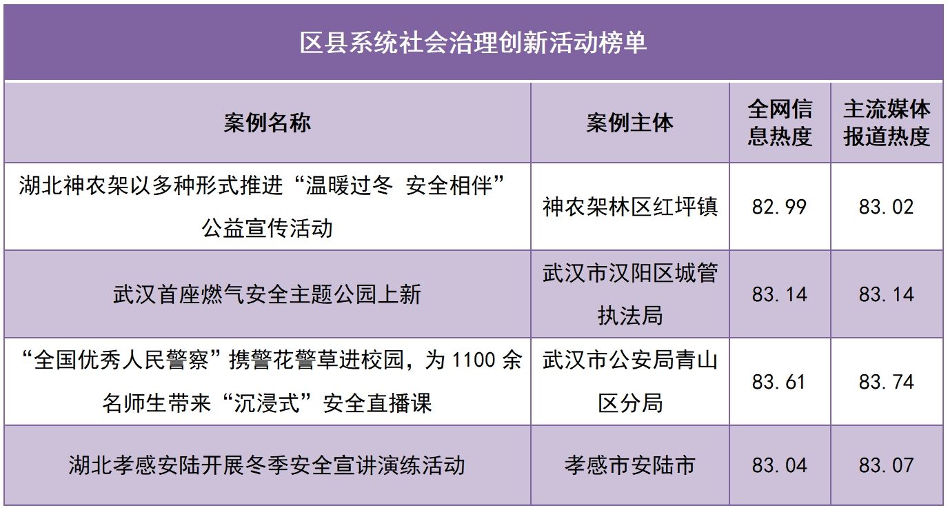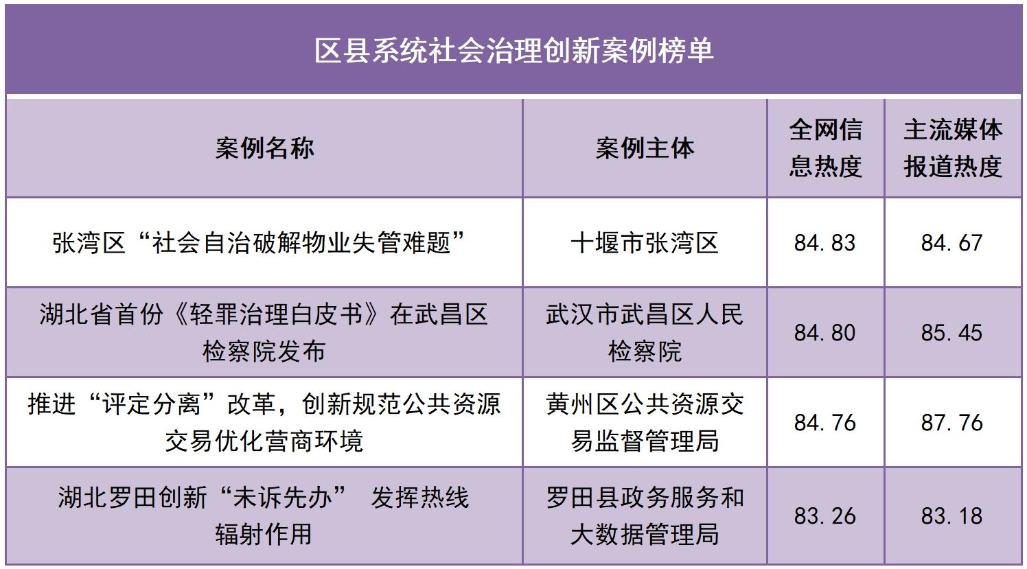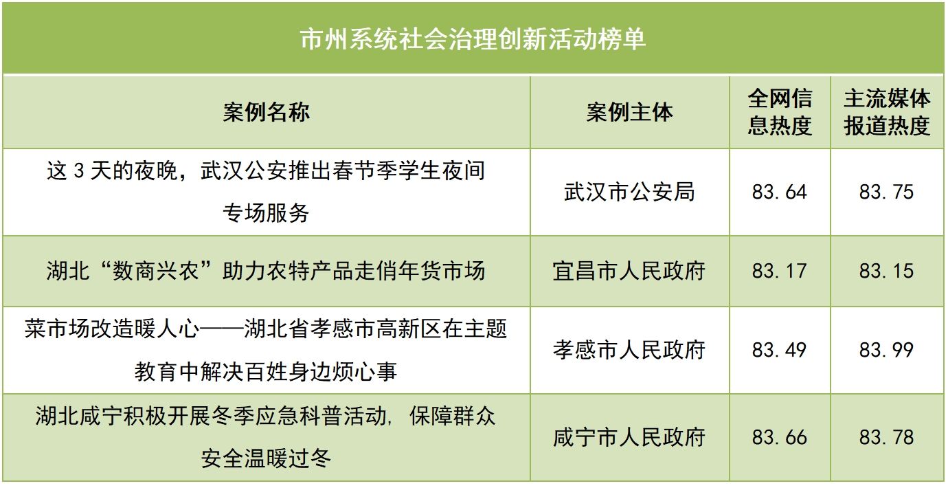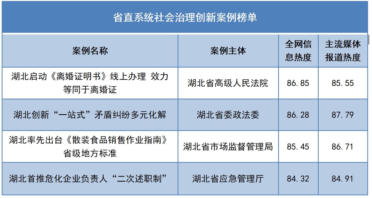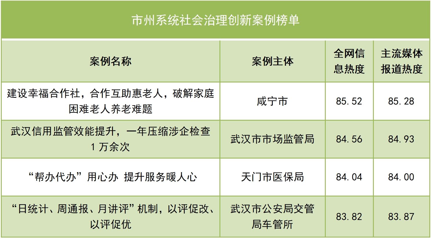 3月7日,由荊楚網(wǎng)(湖北日?qǐng)?bào)網(wǎng))、楚天輿情數(shù)據(jù)研究院制作的“楚治”2024年1月社會(huì)治理創(chuàng)新案例榜單發(fā)布。本期榜單,湖北啟動(dòng)《離婚證明書(shū)》線上辦理,保護(hù)當(dāng)事人隱私獲肯定;武漢市武昌區(qū)人民檢察院發(fā)布“輕罪”治理白皮書(shū),探索系統(tǒng)治理“輕罪”獲輿論點(diǎn)贊;咸寧市積極探索以合作互助理念,破解家庭困難老人的養(yǎng)老難題,成效顯著。