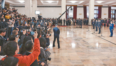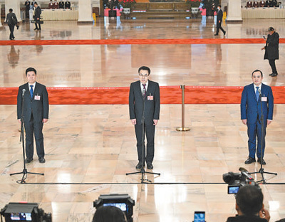 3月4日,首場“委員通道”集體采訪活動在北京人民大會堂舉行。 新華社記者 李 賀攝 |