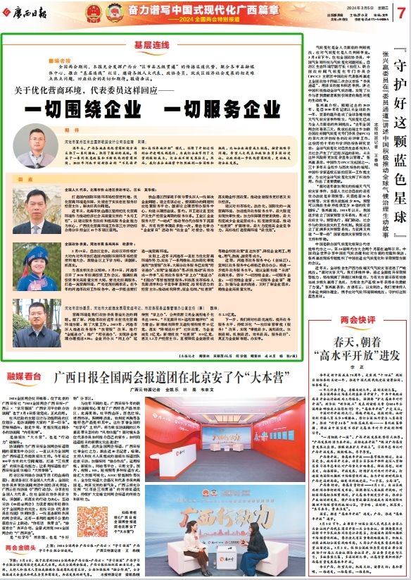 3月5日《廣西日報》第007版推出“基層連線”欄目,刊發(fā)了《關(guān)于優(yōu)化營商環(huán)境,代表委員這樣回應(yīng)——一切圍繞企業(yè) 一切服務(wù)企業(yè)》一文,詳細內(nèi)容如下↓↓