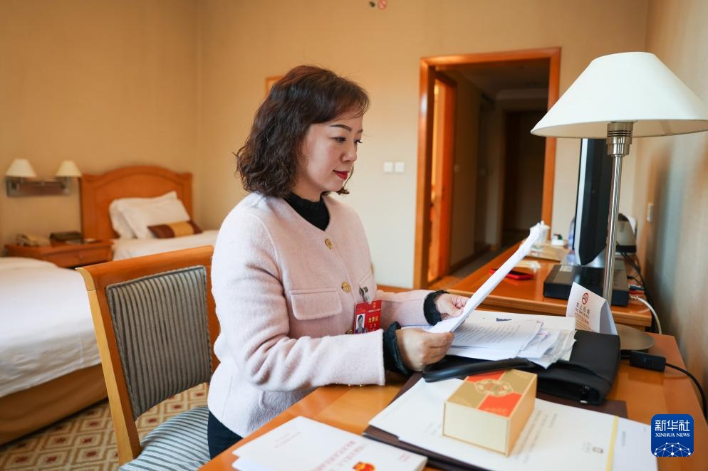 3月3日,王瓊代表在湖北代表團駐地查看文件。