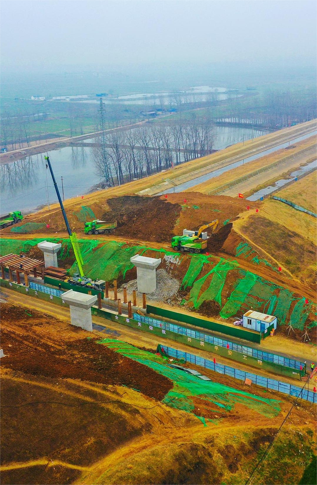 3月4日,襄陽襄州中型灌區續建配套與節水改造項目大崗坡灌區加緊建設中。該改造項目總投資逾1.3億元,設計灌溉面積 14萬畝。(湖北日報全媒記者田悅 通訊員 范小青 周陽 攝)