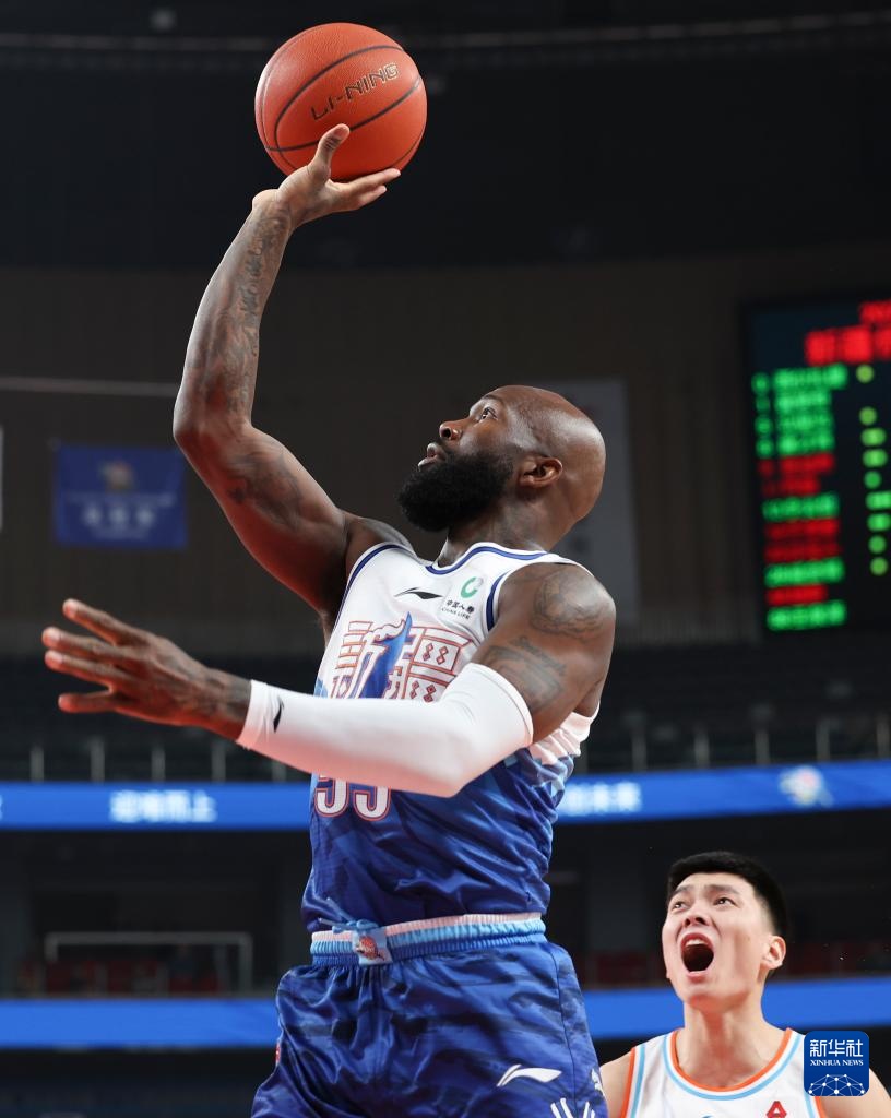3月7日,新疆伊力特隊球員瓊斯(上)在比賽中投籃。新華社記者 胡虎虎 攝