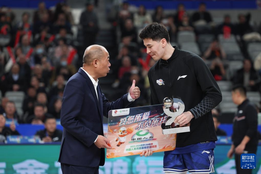 當日,在2023-2024賽季中國男子籃球職業聯賽(CBA)常規賽第40輪比賽中,新疆伊力特隊主場130比121戰勝山東高速隊。