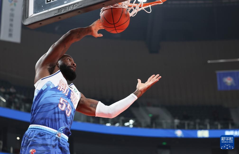 3月7日,新疆伊力特隊球員瓊斯在比賽中扣籃。新華社記者 胡虎虎 攝