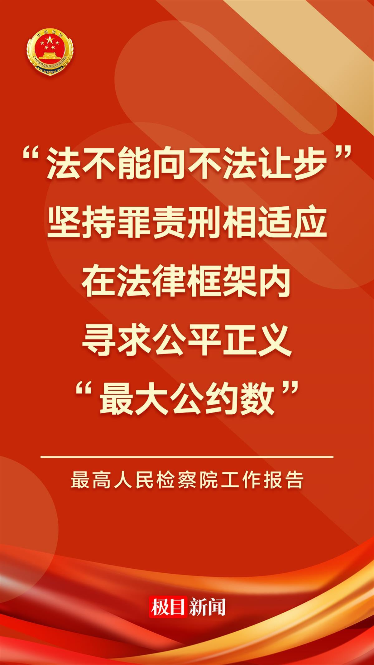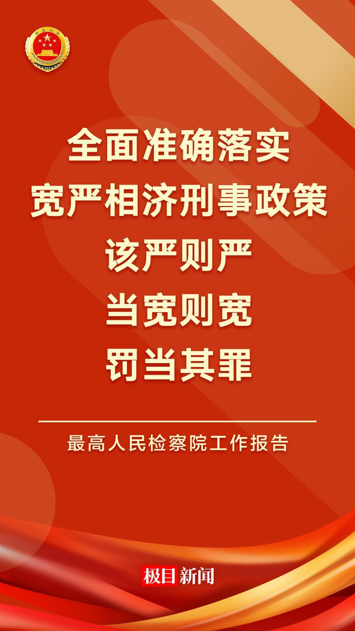 “全面準確落實寬嚴相濟刑事政策,該嚴則嚴、當寬則寬、罰當其罪”“法治是最好的營商環境”“法不能向不法讓步”……報告里的這些“硬核”話語鏗鏘有力、擲地有聲,彰顯了檢察機關為大局服務、為人民司法、為法治擔當的責任與使命。