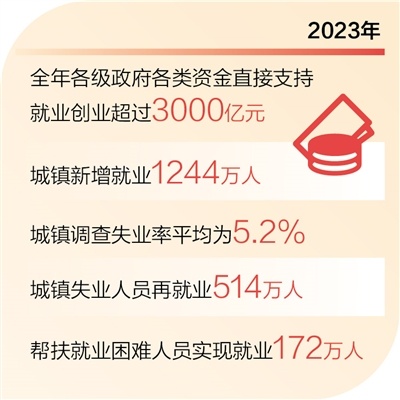 就業是最大的民生。2023年全國城鎮新增就業1244萬人,城鎮調查失業率平均為5.2%,就業局勢保持總體穩定。