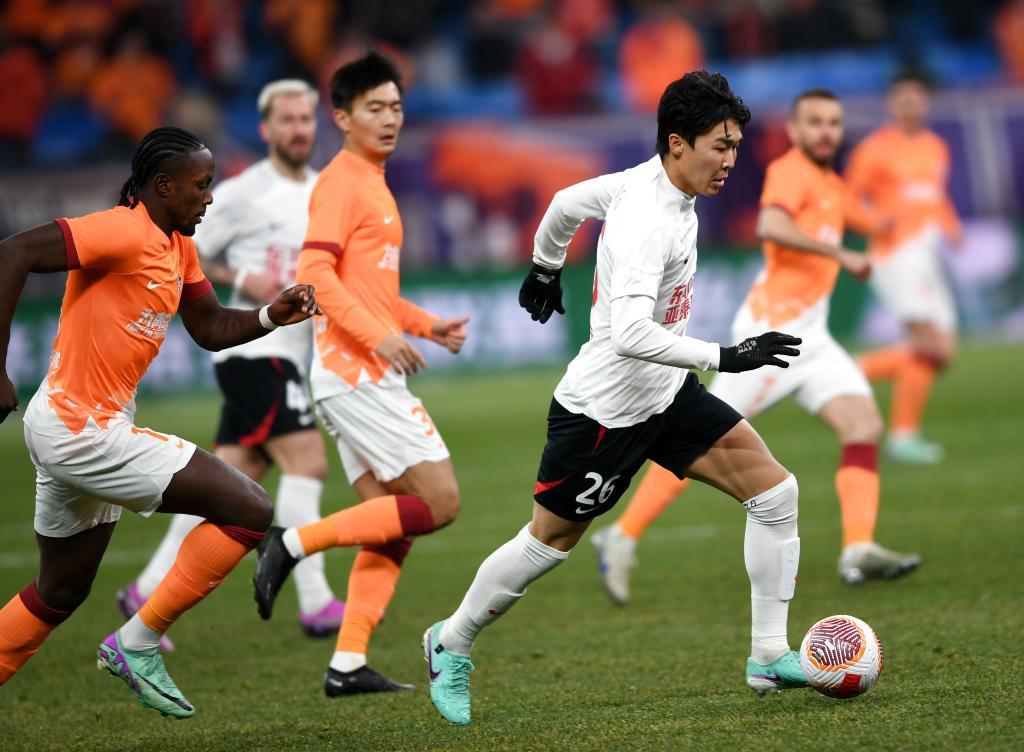 3月8日,長春亞泰隊客場1:0戰勝青島海牛隊。新華社記者 李紫恒 攝