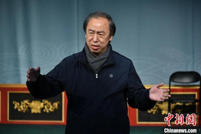 2021年2月8日,北京京劇院,劉侗在彩排京劇《高亮趕水》時和演員交流。(受訪者供圖)