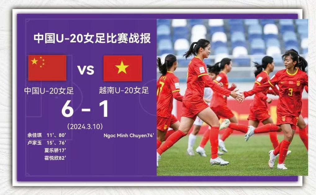 本場比賽,面對小組實力最弱的越南隊,中國隊在上、下半場各入三球。余佳琪、盧家玉均有兩球入賬,夏樂驕、霍悅欣各打入一球。越南隊在第74分鐘打進球隊本屆賽事的唯一進球。