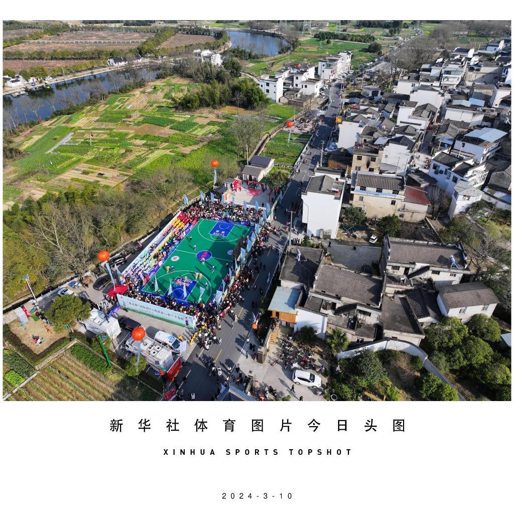 這是3月10日拍攝的籃球比賽現(xiàn)場(無人機照片)。新華社記者 杜宇 攝