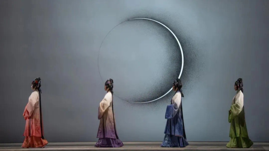 “開辟鴻蒙,誰為情種?都只為風月情濃。”這是《紅樓夢》原著中警幻仙子十二支曲的引子,也是青春版·贛劇《紅樓夢》的開篇唱詞。伴隨著迂回悠揚的青陽腔,在一片極為開闊簡約的寫意舞臺上,寶玉和眾金釵從舞臺兩側緩緩登場,他們相遇、相交,又相錯,似有無限愛恨糾纏,又終歸天地蒼茫。這場兼具古典韻味、地域特色和當代審美的青春戲曲,也由此拉開序幕。