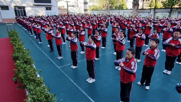 孩子們很快在操場(chǎng)整隊(duì)完畢