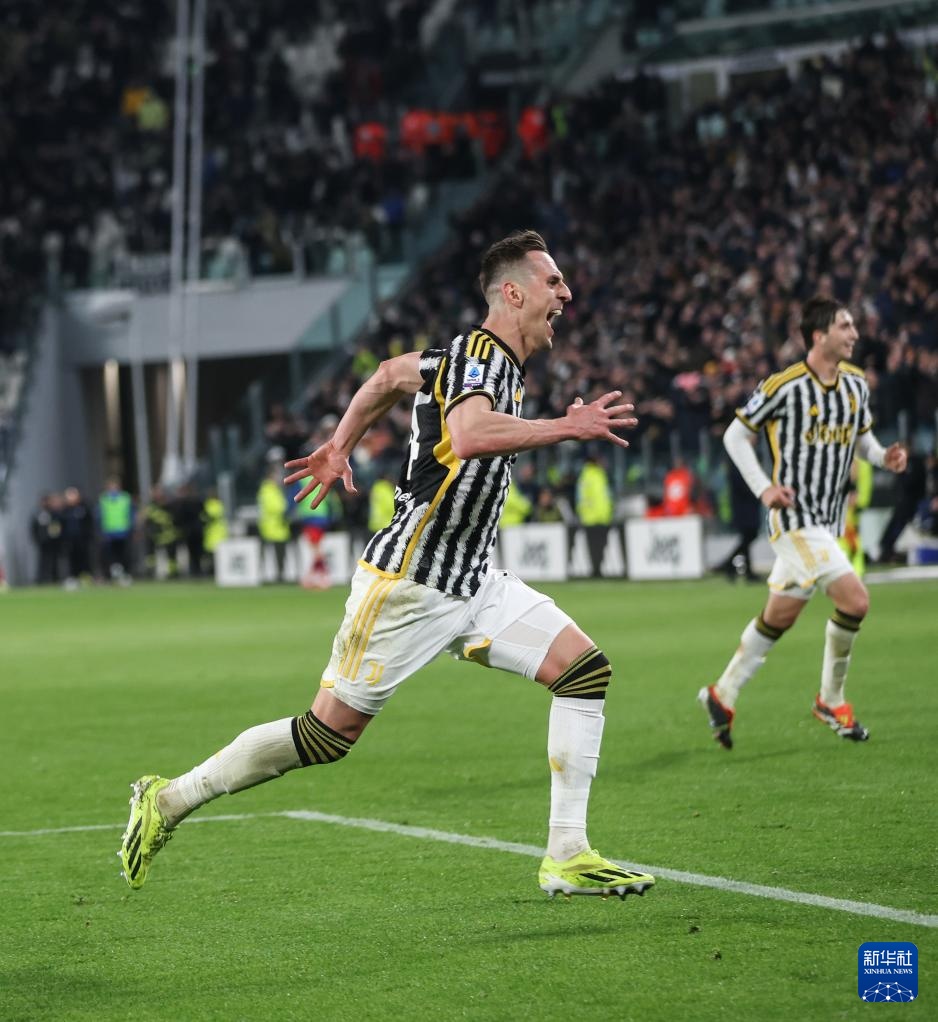3月10日,尤文圖斯隊球員米利克慶祝進球。新華社記者 李京 攝