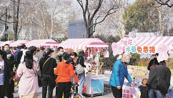 3月7日至3月31日,東湖綠道湖光序曲廣場開放全新櫻花市集“花花游園會”,全新櫻花市集、國潮文創展示、AI櫻花創意形象、專屬打卡圖章以及櫻花季限定福利等精彩活動相繼亮相,將春櫻美景、主題集市、巡游展演與游玩打卡等內容融入東湖櫻花節,為游客開啟一場浪漫的櫻花之旅。在這里,櫻花手作、櫻花文創、櫻花美食,好吃好玩樣樣俱全。
