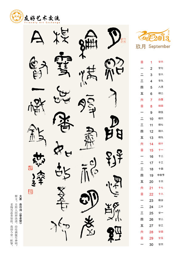 漢字書法是中華民族文化的代表,是中國傳統哲學思想的高度物化,在最簡約的層面上濃縮了中華文化的基本精神。漢字,是中國文化的最小單元,又是中國文化的最高代表。漢字有義:指事、象形、形聲、會意、轉注、假借。漢字的創造、使用、演變、發展與結合造就了中華文化無比的輝煌燦爛。漢字因書法而有無限生動的形式之美,書法因漢字而有無比豐富的內涵之美。漢字與書法互為表里,相輔相成,相得益彰。