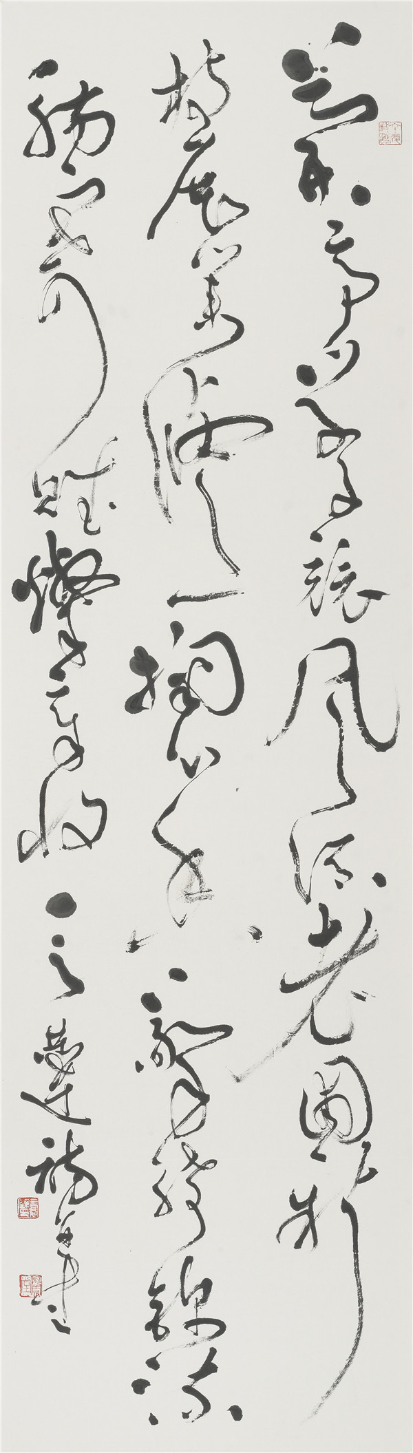 現代中國的書法藝術經歷著歷史上最大的動蕩。縱向歷史的封閉單一與橫向時代的交叉多元形成沖突,不同的文化參照塑造出不同檔次的藝術家。古代大師的書法作品是與古人的文化心理相默契,是由歷史的情境造成的。審美價值的標準是有時間性的。當代書法家就應在這一點上觀照當代文化,建立新的價值標尺。